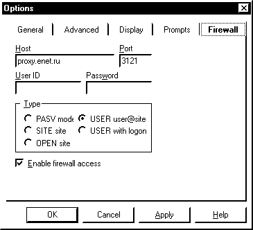 | Настройки прокси для CuteFTP | ||||||||||||